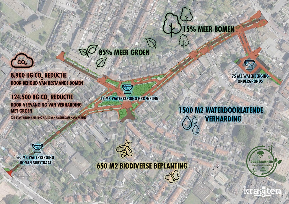 Duurzaamheid is bij Kragten opgesplitst in zeven thema’s: klimaatadaptatie, biodiversiteit, milieu, energie, mobiliteitstransitie, gezonde samenleving en circulaire economie. Deze thema’s worden bij projecten via verdiepingsprogramma’s verder uitgewerkt. Nadat duidelijk is welke thema’s het meest relevant zijn bij een project, worden deze in maatregelen verder uitgewerkt.