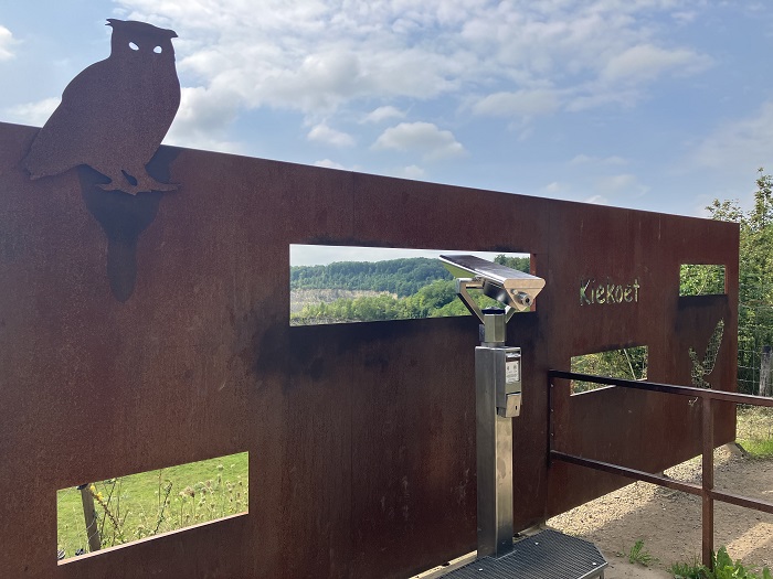 Euroscope plaatst deze kijkers geheel gratis. Een substantieel deel van de omzet wordt geschonken aan Natuurmonumenten, als bijdrage voor de missie van Natuurmonumenten om de natuur dichter bij de mens te brengen. De kijker van Euroscoop doet dit letterlijk. Met een beetje geluk zie je door de kijker de Oehoe in een nis in de rotswand.