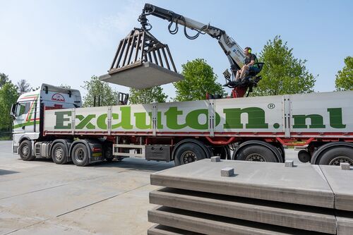 Op onze locatie van tachtig hectare worden alle productgroepen geproduceerd, zoals betontegels, betonbanden, betonstraatstenen en industrieplaten. Voordeel daarvan is dat alle materialen op één vracht vervoerd worden.