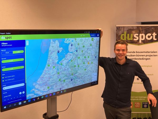 Tinder voor grondstoffen. Dat is zo ongeveer hoe DuSpot zich laat kenmerken. “DuSpot is een onafhankelijke matchingstool waarin vraag en aanbod van vrijkomende materialen in verschillende fases van een project, op een gebruiksvriendelijke en overzichtelijke wijze gevisualiseerd en gematcht worden”, vertelt Mart Mensink, oprichter en directeur van DuSpot.