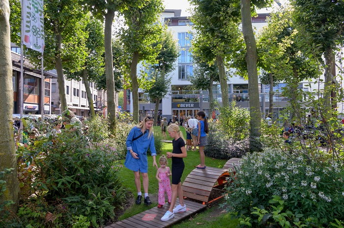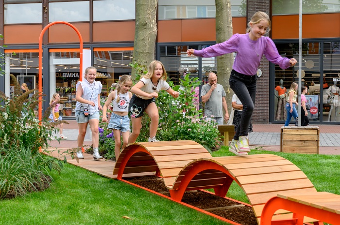 Een ander bijkomend voordeel is er eentje voor de ondernemers: de omzetten zijn enorm gestegen. Dit is volgens Van Ham een logisch, maar natuurlijk aangenaam gevolg. “Met het popup stadspark is meer verblijfsgemak gecreëerd. Door meer groen toe te voegen, hebben we ook de hittestress verminderd.” Het gebied is geschikt voor alle leeftijden. “Zo is er voor volwassenen genoeg zitgelegenheid en is er voor kinderen een looppad met verschillende obstakels aangelegd.”