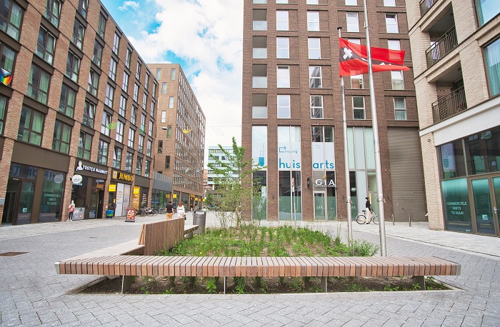 Van een centrum van de buurt naar een centrum op stedelijk niveau, dat was het streven van de transformatie van het Osdorpplein in Amsterdam Nieuw West. “We hadden eigenlijk niet gedacht dat het zou lukken”, zegt landschapsontwerper Bieke van Hees over haar opdracht om die transformatie ook terug te laten komen in de verkleinde openbare ruimte van het gebied. Ze vertelt hoe ze er met haar ontwerp toch in slaagde om die ambitie waar te maken en welke rol het straatmeubilair hierin vertegenwoordigt.