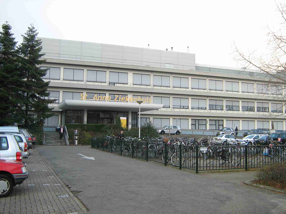De entree van een ziekenhuis, gedomineerd door aandacht voor auto's in plaats van aandacht voor mensen. Een vreemde gewaarwording in een omgeving waar je bij uitstek verwacht dat ze oog hebben voor en prioriteit geven aan het welzijn van mensen. Foto: St. Anna Ziekenhuis Geldrop