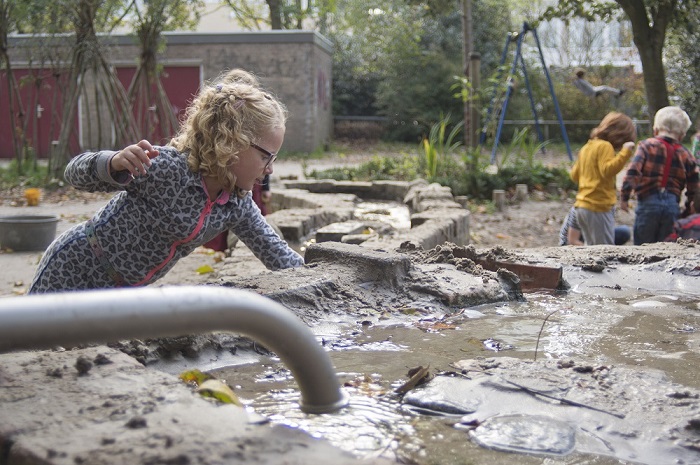 Stromend water op een natuurspeelplaats brengt een extra dimensie en beleving. Het is uitdagend en spannend, maar ook rustgevend. Je kunt spulletjes laten drijven en verplaatsen, ermee spetteren en dollen, of je kunt er minutenlang naar kijken en er je handen of voeten in laten rusten. Onderzoek heeft vastgesteld dat water kinderen verbindt en rust brengt.