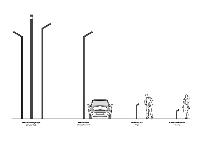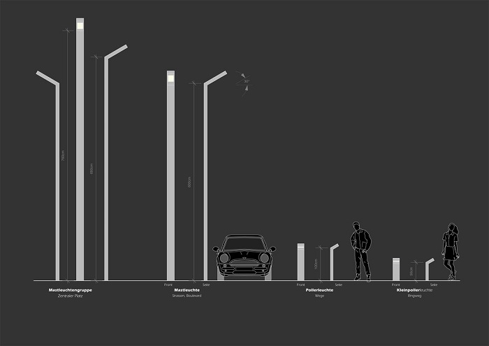 Het lichtmasterplan (2011) van nachtaktiv herleidde de campus tot vier ruimtelijke categorieën, elk met een eigen signatuur – en een bijpassende verlichting: het centrale plein, de straten, de lokale pleinen en de ringcontour rondom de campus.