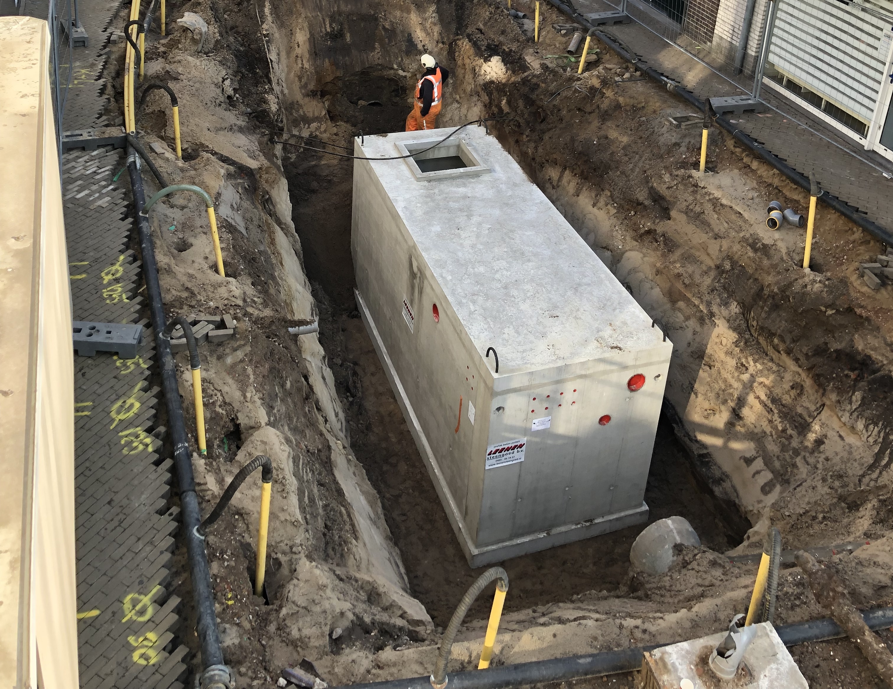 Een deel van het water dat door de Marktstroom loopt, wordt opgevangen in een cisterne, een ondergrondse wateropslag voor droge tijden in de zomer.