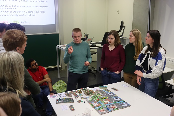 Ze doen dat op een interactieve manier die de doelgroep aanspreekt. “Zo hebben we een spel ontworpen waarbij je op een simpele manier ziet wat beheer openbare ruimte inhoudt. Het spel wordt gespeeld met verschillende groepen – wegbeheerder, groenbeheerder etc. – en laat op een concrete en praktische manier het belang van een integrale benadering van het hele speelveld zien. Dat beheerspel spelen we onder meer op banenmarkten. We wisselen dan ook contactgegevens uit en laten geïnteresseerde jongeren weten dat we afstudeeropdrachten hebben en dat we stageplekken kunnen aanbieden evenals trainee- en vacatureplekken.”