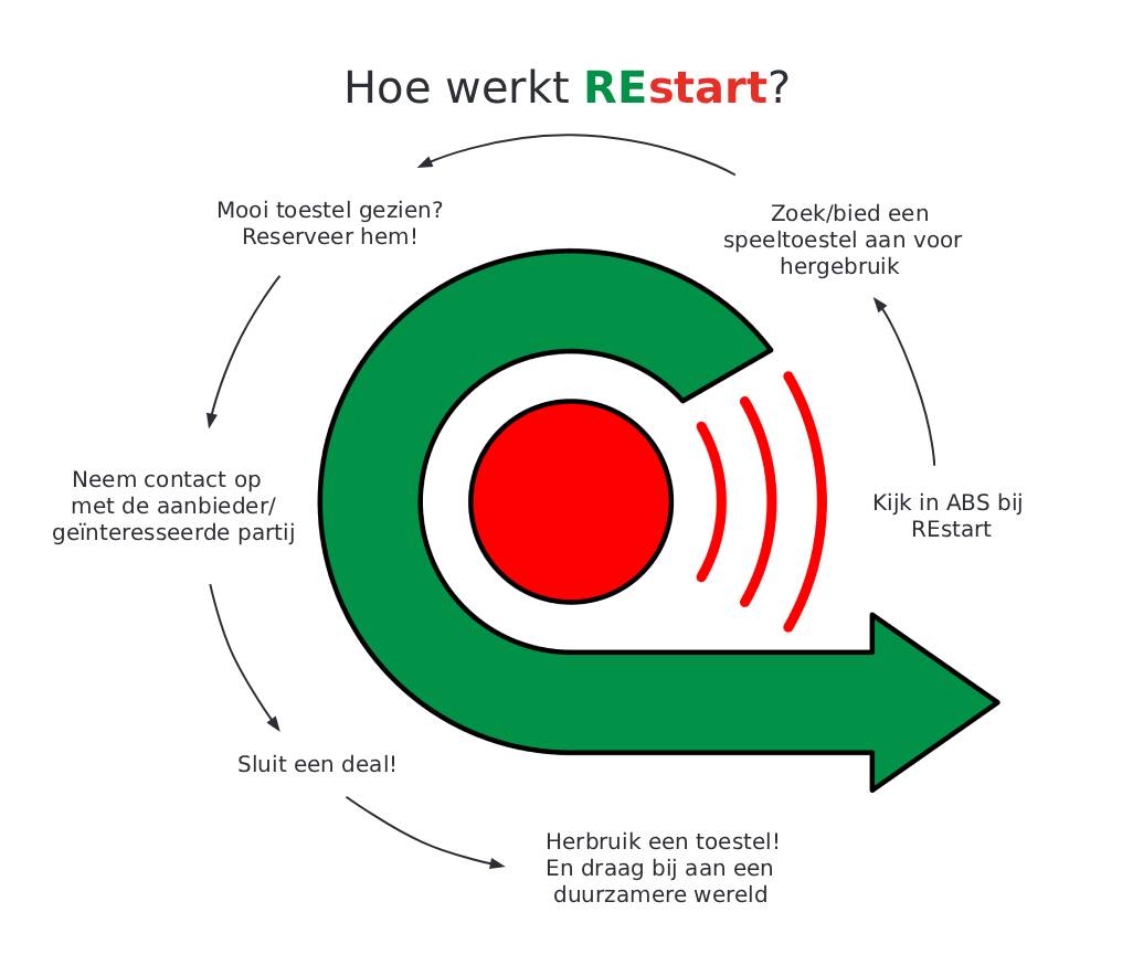 De app van REstart is een marktplaats waarop gemeenten in de regio onderling speeltoestellen en onderdelen kunnen uitwisselen, weggeven of verkopen. Op die manier dragen gemeenten bij aan beter buitenspelen voor kinderen overal.