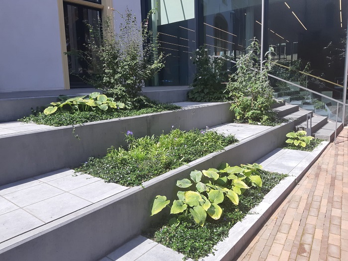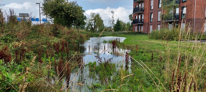 Samenwerken wil (en moet) de gemeente ook met de burger en andere partijen die de particuliere ruimte in het stedelijk gebied bewonen of gebruiken. “Zestig procent van de binnenstedelijke ruimte is particuliere ruimte, waar de gemeente afhankelijk is van bewoners”, zegt Sanne Hulleman, adviseur Waterhuishouding en Riolering bij de gemeente. “We willen de bewoners er bewust van maken dat we een gezamenlijke opgave hebben. Je ziet dat meer mensen zich er wel bewust van zijn dat er iets moet veranderen, maar ook nog graag een onderhoudsvrije tuin hebben met ruimte om in te zitten - op verharde ondergrond of onder afdakjes. Of meer bijbouwen aan hun huis, wat voor meer dakoppervlak zorgt. Die verstening van de privégrond draagt bij aan meer hittestress en meer wateroverlast in de openbare ruimte, wat de opgave voor de gemeente weer groter maakt. En ruimte inneemt die voor andere doelen of functies gebruikt zou kunnen worden.”