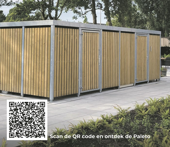 Kenmerkend zijn de vele opties: diverse wandafwerkingen, enkele of dubbele deuren, geïntegreerde hemelwaterafvoer en verlichting. Ook een groen sedumdak of laadpunten behoren tot de mogelijkheden. In de verhoogde uitvoering biedt de Paleto ruimte voor dubbellaagse fietsparkeersystemen, waarmee gemeenten extra capaciteit creëren zonder extra ruimte in te nemen. Zo is de Paleto praktisch, duurzaam én toekomstgericht.