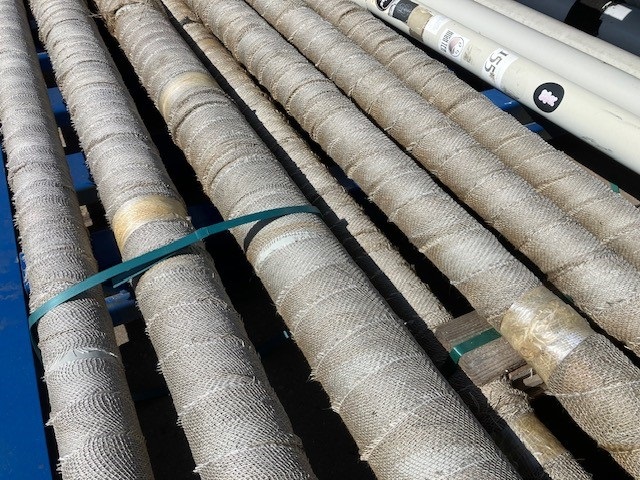 Masten die teruggekomen zijn uit het veld liggen klaar om op transport te gaan