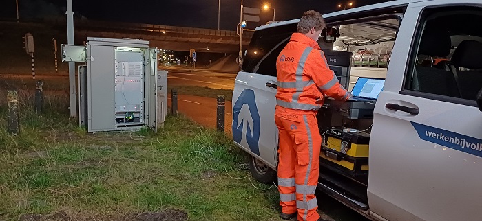 “In een app op onze tablet zien we welke storingen er zijn en waar we heen moeten,” vertelt Kemkes, “Iedere monteur heeft zijn eigen planning. Zodra we op de locatie zijn waar de storing gemeld is, gaan we eerst naar de verkeersregelinstallatie. Dit is een grote kast die de verkeerslichten aanstuurt. Via die kast kunnen we uitlezen wat de storing is en waar die zich bevindt, de meeste verkeersregelinstallaties kunnen we ook op afstand benaderen en zo uitlezen wat de storing is.”