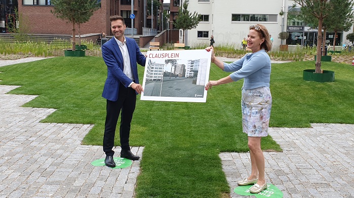 De opening van het Clausplein door wethouder Rik Thijs en Cora van Nieuwenhuizen, minister IenW