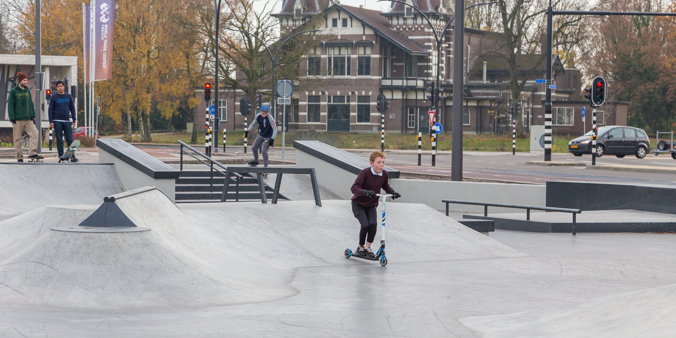 Op het Industrieplein is een prominente plek weggelegd voor het skatepark (zie ook kader). Landman: “De skaters hadden voorheen een plek bij het oude stadhuis in de binnenstad. Toen die plek werd opgeheven, startte een zoektocht naar een nieuwe plek. Uiteindelijk vonden we het Industrieplein een goede plek, omdat er veel reuring is. En ook de skaters zelf willen graag af van het imago dat ze ergens in een achteraf hoekje worden weggestopt.”
