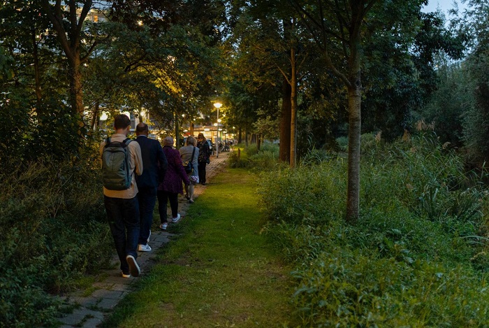 Tijdens een opdracht voor de gemeente dacht ze na over de invloed van haar kunstwerk op de uit- en inbreiding van de stad. “Er komen kloppende nieuwe stadsharten in Noord, Nieuw-West en Zuid-Oost, dat zijn langlopende ontwikkelingen. Een kunstwerk is daarin vaak maar een druppel op een gloeiende plaat. Daardoor ging ik nadenken over hoe ik met mijn expertise kon bijdragen aan de ontwikkeling van de openbare ruimte. De discussie over lichtkwaliteit verdient verbreding: het mag niet enkel gaan over veiligheid en technische normering, maar moet ook over ecologie, gezondheid en sociale beleving gaan. In het ontwerp van de openbare ruimte wordt inmiddels veel aandacht besteed aan vergroening, maar de natuurlijke cyclus van licht en donker blijft onderbelicht. Juist dat gemis – het ontbreken van ritme in onze stedelijke omgeving – was voor mij aanleiding om licht-sensitieve wandelingen te organiseren.”