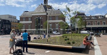 De grote plantenbak op het plein is uitgerust met zitelementen. “Daarnaast kun je in de zomer de bomen rond omheen ook mooi gebruiken om schaduw te creëren. Hierdoor nodigt het voor de inwoners en bezoekers, ook als er geen evenementen zijn, veel meer uit om op het plein te verblijven dan voorheen het geval was.”