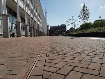 De afwatering van het nieuwe plein bleek een behoorlijke uitdaging. Denk hierbij aan een beperkte inbouwhoogte, door de onderliggende parkeergarage en een forse hydraulische opdracht (Rieks getallen). Het af te voeren regenwater wordt tevens geïnfiltreerd en moet hiervoor eerst ontdaan worden van vuil en slib. Een lastige opgave, omdat hier eigenlijk geen ruimte voor is.
