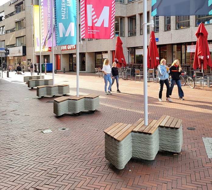 In de markt van de openbare ruimte wordt 3D-betonprinten steeds vaker toegepast, zegt Cornelissen. “Het is een technologie die door de markt omarmd moet worden. Als je kijkt naar de acceptatiecurve van nieuwe producten of technologieën zit je bij de meeste 3D-geprinte producten nog aan het begin. Bij onze 3D-geprinte taludtrappen zijn we al verder, deze worden al met grote regelmaat besteld. Er zijn steeds meer klanten die het als kans zien om hier vandaag mee aan de slag te gaan, dit zijn echte early adapters. Een voorbeeld is de gemeente Eindhoven, waar we The Vibe voor hebben geprint. Een multifunctioneel openbaar object gebaseerd op de iconische vorm van het stadslogo.”