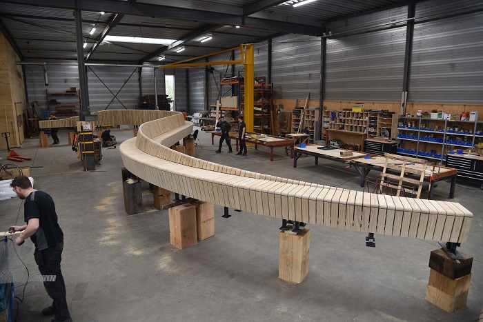 De ontwerpers modelleren de bank in 3D in drie stukken. “We hebben gekeken waar de delen met en zonder rugleuning kwamen en waar de overgang daartussen moest komen. Grijsen is een fantastisch bedrijf dat zo’n ingewikkeld model één op één kan maken”, vindt Bukarowicz. “Ze hebben met hun ervaring wel meegekeken en het enige wat ze hebben aangepast is de zithoek, zodat het lekkerder zit.”