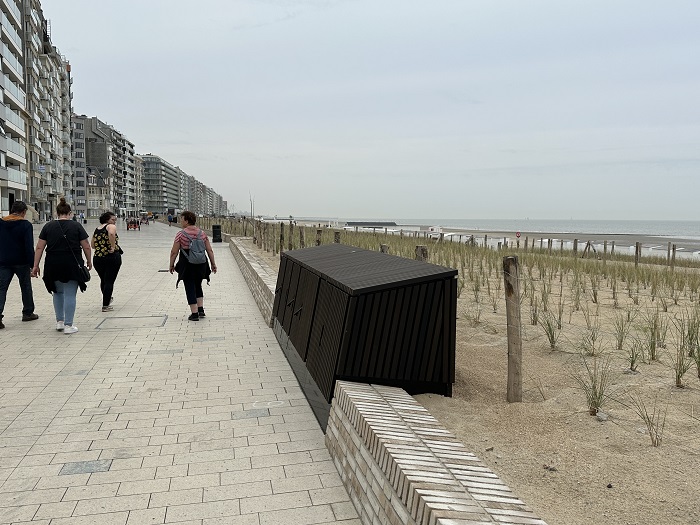 De gemeente Middelkerke heeft Buitenkast techniek benaderd om deel te nemen aan een ontwerpteam. Dankzij een nauwe samenwerking met de gemeente Middelkerke, MOPPurbadesign, Philip Moyersoen en Cluster Landscape heeft geleid dit tot een ontwerp van hele bijzondere en fraaie kasten. Deze zijn geïntegreerd in de keermuur en voorzien van een fraaie robuuste bamboe houten afwerking. Het technisch ontwerp en de productie van de kasten is gedaan door Buitenkast techniek. Dit was inclusief alle benodigde installatietechniek in de kasten.