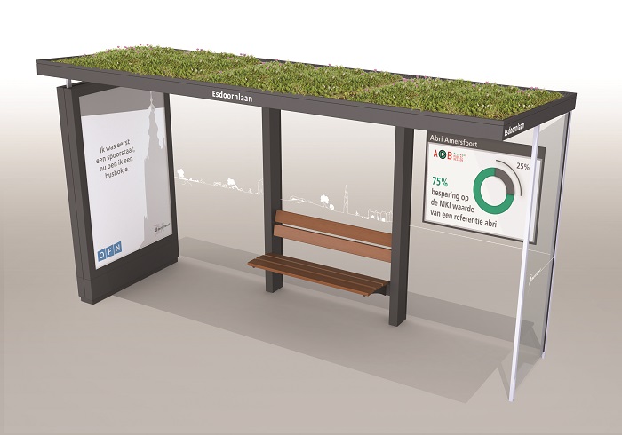 “Zo ontwerpen we bijvoorbeeld halte-inrichtingen en fietsenstallingen. We kijken dan naar een zo duurzaam mogelijke exploitatie of hoe we zo min mogelijk materiaal verwerken in een product. Hierbij nemen we bijvoorbeeld de MKI (Milieu Kosten Indicator) als uitgangspunt. Zo hebben we een abri kunnen ontwikkelen met een MKI die 25 procent is van de MKI van een referentie-abri. Dan heb je het over een forse vermindering van de milieu-impact. Het begint dus met het verminderen van de hoeveelheid gebruikt materiaal en de aantallen verschillende materialen. Daarnaast kijken we heel gericht welke materialen goed kunnen worden hergebruikt.”