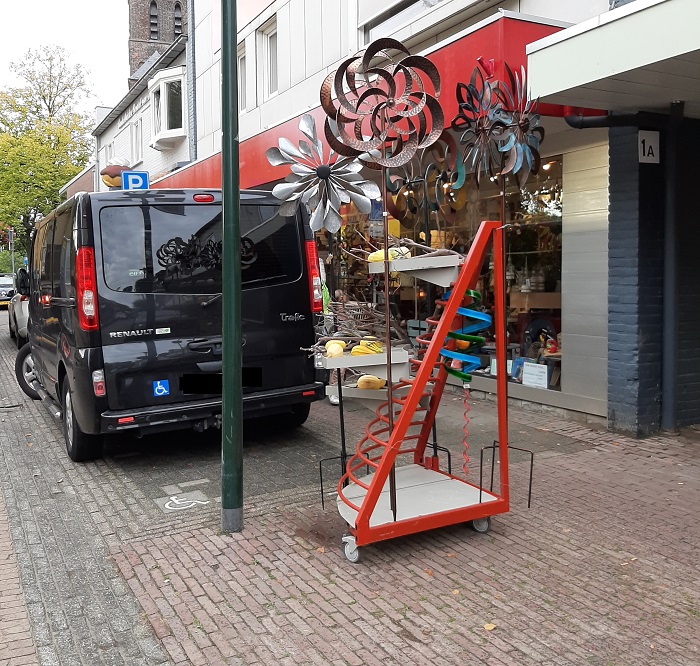 Bij haaks parkeren vindt het verlaten van de auto via de achterzijde met zo’n lift plaats in de ruimte achter de parkeerplaats. Over het algemeen betekent dat, dat er in de doorgaande route wordt gestoken. En dus dat het verkeer moet stoppen, zeker als er tegenliggers zijn of de straat smal is. En ook in deze situatie duurt het verlaten van de auto langer. Het is ook in dit geval onveiliger.