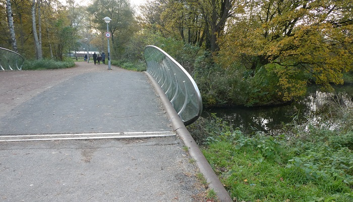 Op een brug is het vervolgens voor mensen met een beperking van belang dat zij een steunpunt vinden als zij een loopbeperking hebben. Dat steunpunt is bij de brug op de foto anders dan gewoonlijk. Hoewel het een prachtig design is, kan tegen deze leuning niet geleund worden zoals mensen dat regelmatig doen om even rond te kijken of eendjes te voeren. Sterker nog, als ze dat doen omdat ze dat zo gewend zijn, raken ze uit hun evenwicht. Een risico dat grote gevolgen kan hebben.
