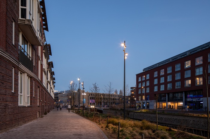 Bij de materialisatie is er daarom voor gezorgd dat de verlichting smart is en dat er ruimte is om in de toekomst smart city-oplossingen toe te voegen, bijvoorbeeld op het gebied van sensoriek of cameratoezicht. “De lichtmasten zijn ook voorzien van meerdere inspectieluiken: de eerste is voor de aansluiting op het net, de tweede voor controle, aansturing en alle smartcomponenten die erbij komen kijken. Achter beide inspectieluiken is in de toekomst nog ruimte voor een eventuele glasvezelaansluiting.”