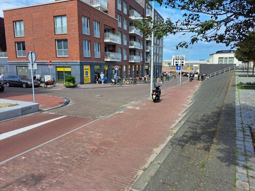Het fietspad van de Westduinweg is doorgetrokken de Van Bergenstraat in. Waar eerst de straat was, is dus een rode fietsstrook gekomen. Direct daarna zijn de zitelementen met groen gerealiseerd. “Het ziet er ook echt heel anders uit dan voorheen, dus je ziet in principe ook gelijk dat je niet meer rechtsaf kunt met de auto. Er is veel ruimte voor fietsers en voetgangers. Een deel van de Van Bergenstraat is nu van een brede tweerichtingsverkeersstraat, waar ook auto’s welkom waren, veranderd in een eenrichtingsweg waar enkel fietsers en voetgangers mogen komen. Dit komt de verkeersveiligheid voor de zwakkere deelnemer dan ook echt ten goede, en daar zijn we natuurlijk trots op.”