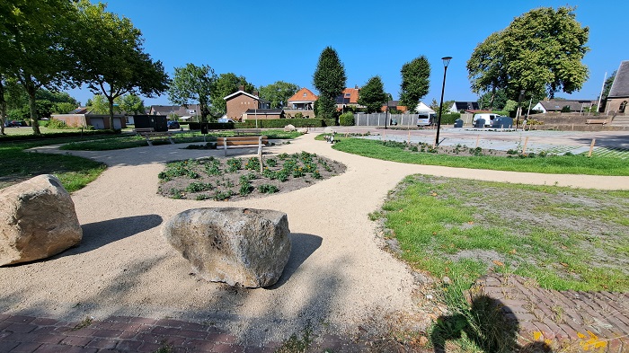 “In 2016 was nog het idee om met het vergroenen van het plein wateroverlast te verminderen”, zegt Timmermans. “Maar het is veel meer geworden. We hebben echt een ontmoetingsplein gemaakt voor het dorp. Het plein nodigt uit tot verblijf. Daar draait het ook om toch? Dat het plein het sociale leven in het dorp ondersteunt, naast dat klimaatbestendig is. Dat vind ik een prachtige combinatie.” Tijdens warme zomerdagen zoeken mensen plekken op die koel zijn. Het laat zien hoe waardevol een dergelijke nieuwe inrichting is. “Het geeft aan hoe belangrijk dit soort plekken zijn voor het sociale leven van een dorp”, benadrukt Timmermans.