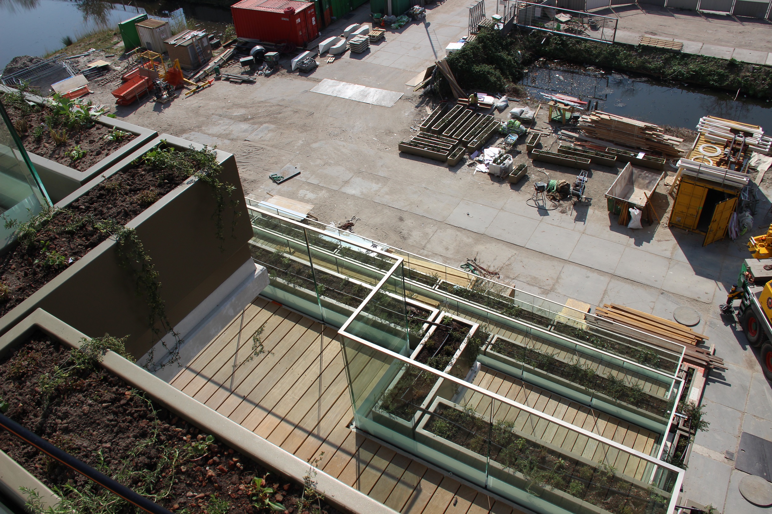 Op woontorens op de Zuidas wordt in totaal 624 strekkende meter aan plantenbakken geplaatst