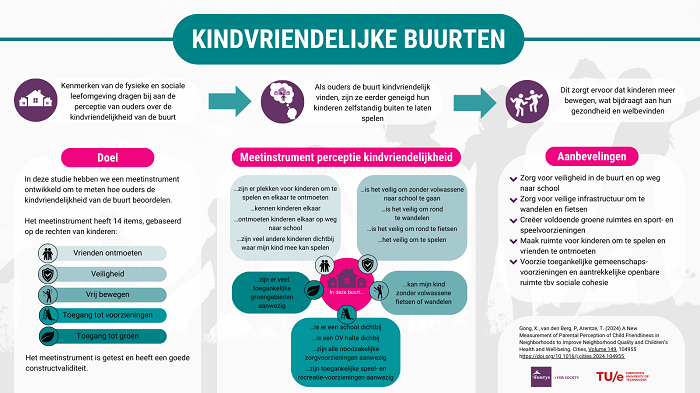Dit artikel is gebaseerd op het artikel “A new measurement method of parental perception of child friendliness in neighborhoods to improve neighborhood quality and children's health and well-being.”, gepubliceerd in Cities. Het volledige artikel is hier te vinden: A new measurement method of parental perception of child friendliness in neighborhoods to improve neighborhood quality and children's health and well-being - ScienceDirect