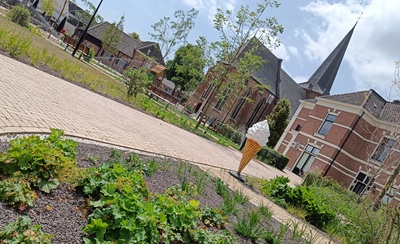 Het centrum van Dinxperlo is vernieuwd tot een toekomstbestendige, groene verblijfsplek. Waar eerst een versteende parkeerplaats lag, tref je nu een sfeervol plein met veel beplanting. Deze herinrichting speelt slim in op klimaatverandering: hevige regenval en droge, warme zomers vragen namelijk om een andere aanpak. Minder verharding en meer groen zorgen voor verkoeling en wateropname. Maar hoe houd je het groen in droge periodes in leven zonder drinkwater te verspillen?