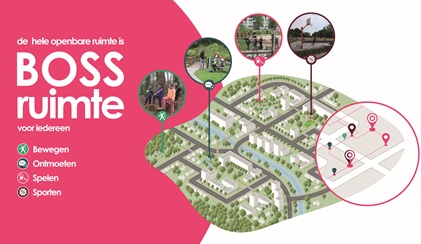 Het team van OBB Ruimtemakers ontwerpt en adviseert ruimte voor iedereen om te Bewegen, Ontmoeten, Spelen en Sporten. BOSSruimte dus; openbare buitenruimte die uitnodigt en uitdaagt om meer, intensiever en langer samen buiten te zijn voor BOSS.