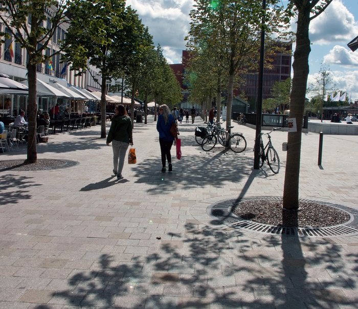 In tegenstelling tot de Markt stonden er op ’t Zand sinds eeuwen al bomen. Volgens oude kaarten langs de wanden. Met het bovengronds fietsverkeer, de constante doorloop van bewoners en bezoekers vanuit bus- en treinstation, maar ook vanuit de ondergrondse parkeergarage was een andere opstelling nodig. Dit vooral voor het verblijf. Niet dat mensen lang plaats zullen nemen op een van de banken. Integendeel, ze komen, blijven even en verdwijnen weer in de mensenstroom in de straten van de historische stadskern.