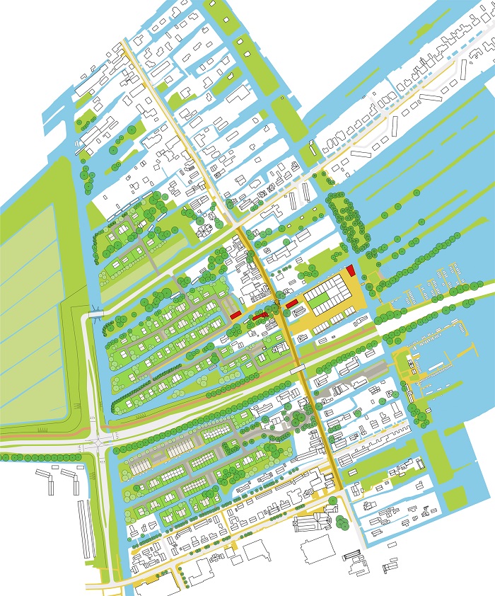 In dit centrum is volgens Leschot ruimte voor de bestaande Albert Heijn aan de Herenweg, diverse winkels en horecagelegenheden. “Met terrassen aan het water, zodat mensen aan de plassen kunnen recreëren”, schetst de projectontwikkelaar de plannen. “Onder het nieuwe centrum komt ruimte voor ongeveer driehonderd parkeerplekken.” Verder is het de bedoeling dat het aangrenzende dijkgebied ook wordt benut voor recreatie. “Met een bruggetje kunnen we het recreatiegebied verbinden met de dijken, waar mensen dan ook kunnen genieten van de plassen.”