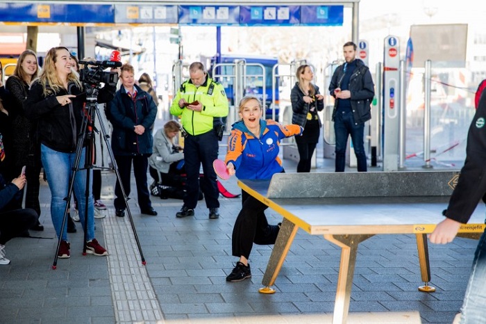 De tafeltennistafel staat van woensdag 27 februari tot en met vrijdag 1 maart op station Zwolle, in de ruimte genaamd Buitensporig Zwolle.