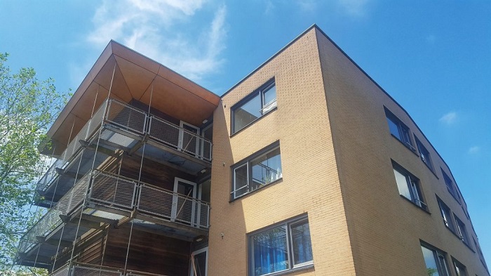 Het is tussen 1994 en 1996 gebouwd naar een onderwerp van Mieke Bosse. Opvallend zijn de houten balkons. Deze zijn aan de overstekende houten dakrand opgehangen en doen dienst als vluchtroute, buitenruimte en zonwering. Het is een levendig en speels gebouw, typisch jaren ‘90 en heel anders dat de twintig jaar eerder gebouwde panden die eromheen staan.