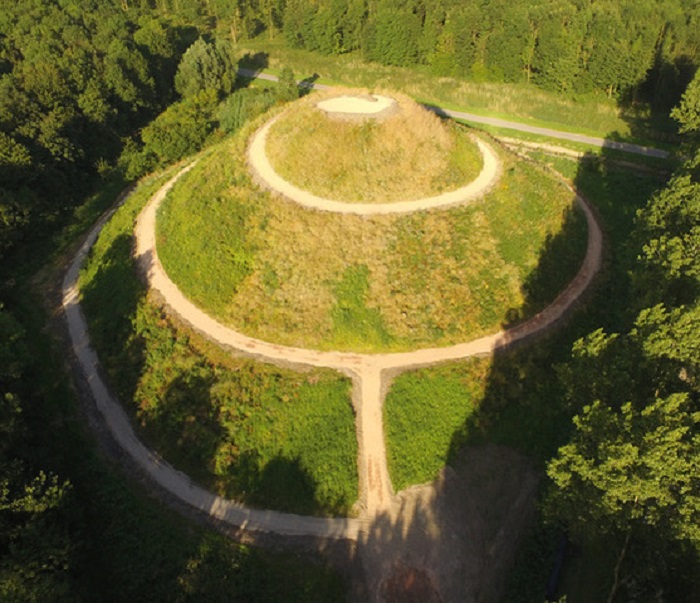 Boven op het monument wordt een kunstwerk geplaatst, ontworpen door de kunstenaars Gijs Frieling ( monument) en Sajoscha Talirz ( monumentale banken). Een spiraalvormig pad leidt naar dit kunstwerk, en naar de top van de berg. De beklimming biedt Almeerders en overige bezoekers een bijzondere ervaring in het samengaan van cultuur en natuur. Boven aangekomen ervaart men de kunstwerken, het omringende bos èn een unieke uitkijk over de stad.
