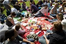 De uitvinding van deze zomer: een wegwerp-picknickkleed. Door drie punten van het kleed samen te pakken en die door het gat in het vierde punt te trekken, vormt zich een afvalzak. Na een proef in het Vondelpark Amsterdam, krijgt ook het Westerpark binnenkort gratis CleanPicnic-kleedjes.