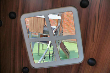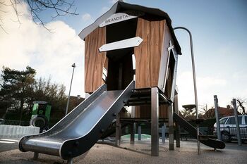 Het zeer aantrekkelijke en bijzondere design maakt van uw speelplek direct een opvallende openbare speelruimte. Plaatmateriaal is fraai afgewerkt HPL welke in frisse kleuren (blauw, geel en mintgroen) geleverd wordt maar ook gekozen kan worden voor de iets rustigere (en natuurlijke) bruine houtprint. De toestellen laten zich dan ook moeiteloos combineren met een natuurspeeltuin. Staanders, glijbanen en rekstangen zijn standaard van RVS. Ook is het mogelijk - tegen minderprijs! - stalen staanders welke thermisch verzinkt en gepoedercoat worden te kiezen. De prijs van deze toestellen zal u, ook al in de standaard uitvoering, prettig verbazen!