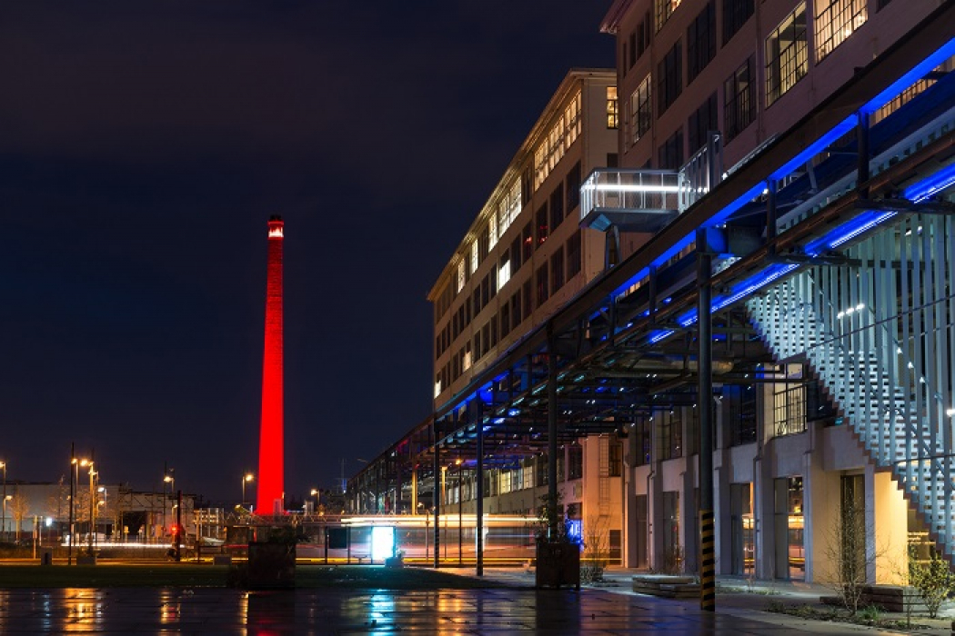 Een belangrijk restant uit het recente industriële verleden van Strijp-S, een voormalig industrieterrein van Philips, is de ‘Leidingstraat’. Deze grootschalige structuur voorzag de aanliggende productiegebouwen van energie en hulpstoffen. Dit verdwenen transport van gassen en vloeistoffen wordt visueel gemaakt door een dynamische verlichting van de leidingen op deze 550 meter lange structuur. De leidingen worden in segmenten van onderaf verlicht door led-strips waarvan de lichtintensiteit en lichtkleur per 10cm te reguleren is. Door het in sequentie variëren van de lichtintensiteit worden lopende lichtpatronen met wisselende snelheden over de lengte van de buizen op de leidingen gegenereerd. Met behulp van wisselende lichtkleuren refereren we aan de verschillende stoffen die ooit door deze pijpen hebben gestroomd.