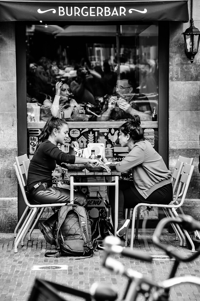 Izo van Thiel, koos ook voor Utrecht als locatie. De foto heeft volgens de jury een mooie gelaagdheid. Het spel tussen binnen en buiten is goed gedaan. Het spiegelende oppervlak zorgt voor een vervreemdend effect. De foto is generiek; hij kan overal genomen kan zijn. Dat is de kracht en tegelijkertijd de zwakte van het beeld.