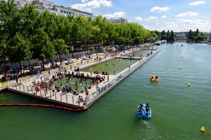 In één van de kanalen van Parijs is in juli een speciale zwemzone geopend. Inwoners en toeristen kunnen tijdens een hittegolf verkoeling zoeken in het bad dat gevuld is met water uit de Seine.