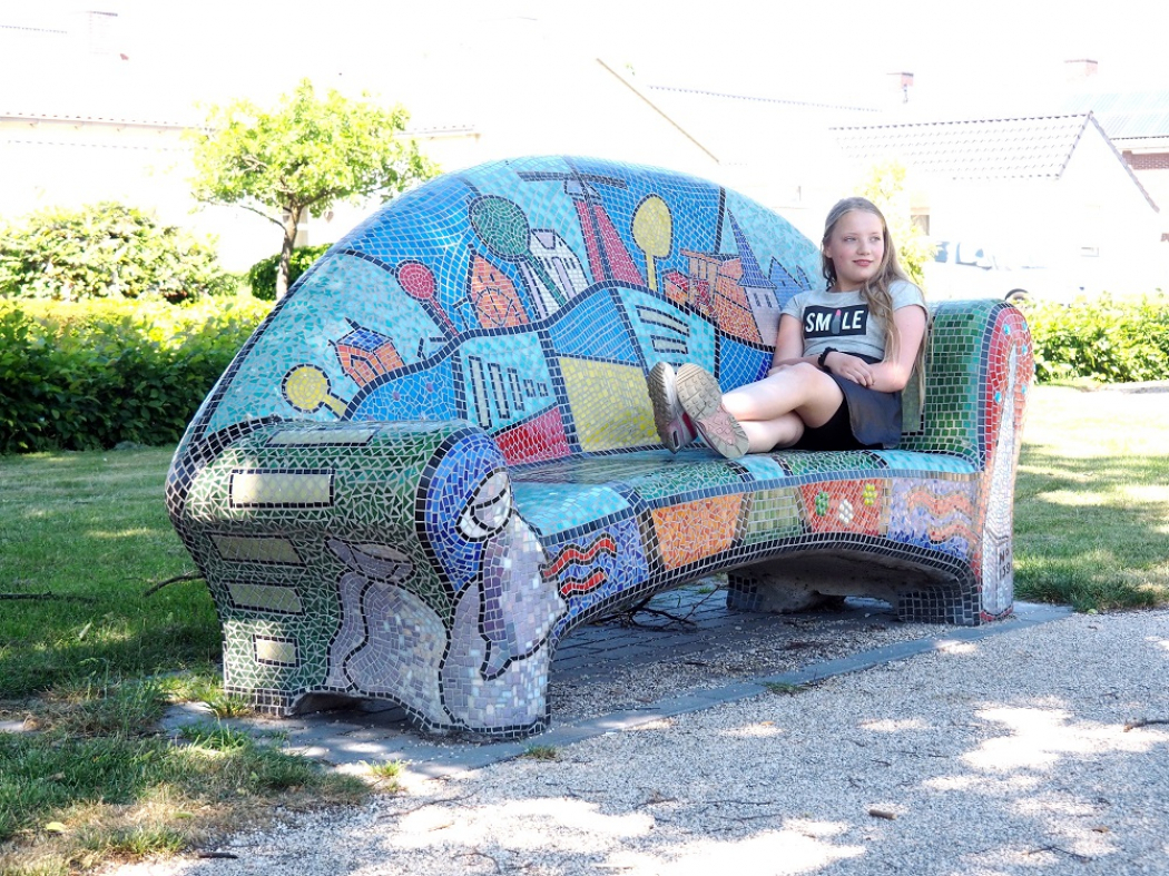 Zoals al genoemd zijn de sociale bankjes van beton gemaakt, versierd met mozaïek. De keuze van mozaïek is niet geheel toevallig. Dit materiaal heeft namelijk vele voordelen. De uv-stralen van de zon hebben geen vat op de kleuren, zo zal het bankje altijd mooi blijven. Mozaïek is überhaupt zeer weersbestendig. Het zet niet uit in de zomer, krimpt niet in de winter en zuigt ook geen vocht op zodat het niet kapot kan vriezen. Verder is het materiaal makkelijk schoon te maken en moeilijk kapot te krijgen.