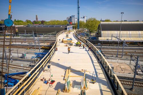De bouw van de Passerelle in Zwolle (Foto Stefan Verkerk)