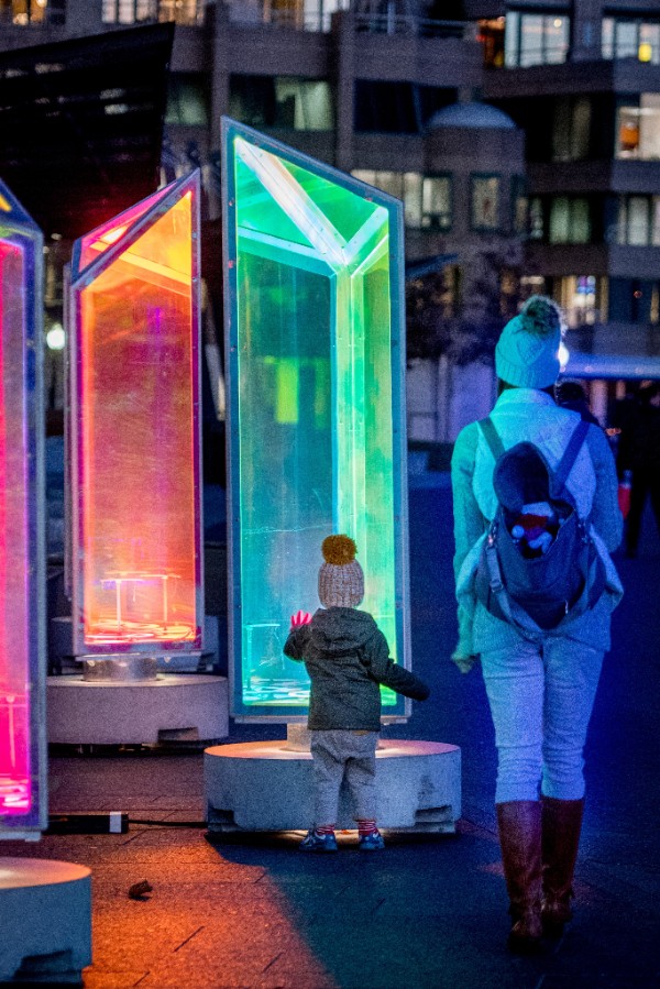 Prismatica, de zogeheten kunstinstallatie, is ontwikkeld door design- en architectuurstudio RAW. De lichtobjecten zijn te bewonderen op de oevers van de rivier de Potomac in Georgetown (Washington DC) en op Parliament Hill in Ottawa als onderdeel van de Christmas Lights Across Canada Season.