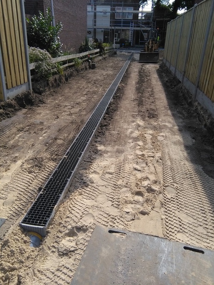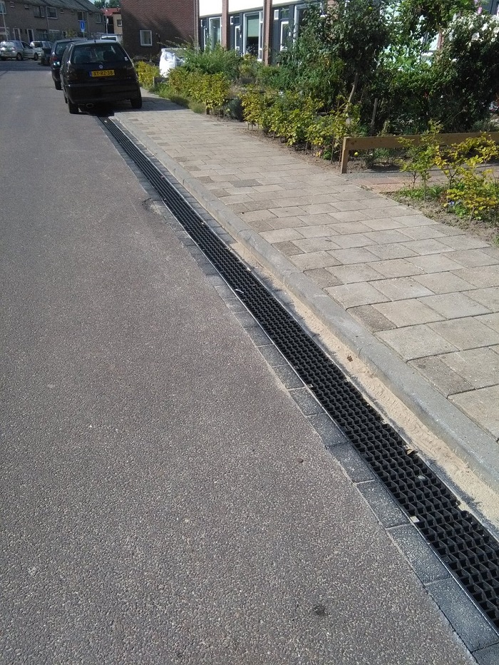 Bij zware regenval wordt het water, dat niet verwerkt kan worden door het riool, door de lijngoten afgevoerd naar de waterberging. “Water dat anders op straat zou blijven staan en naar de kelders zou lopen”, aldus Jos Immerman. Hij is te spreken over de toegepaste producten. “Financieel was het voor ons prima te doen. En het zijn mooie, strakke goten.”