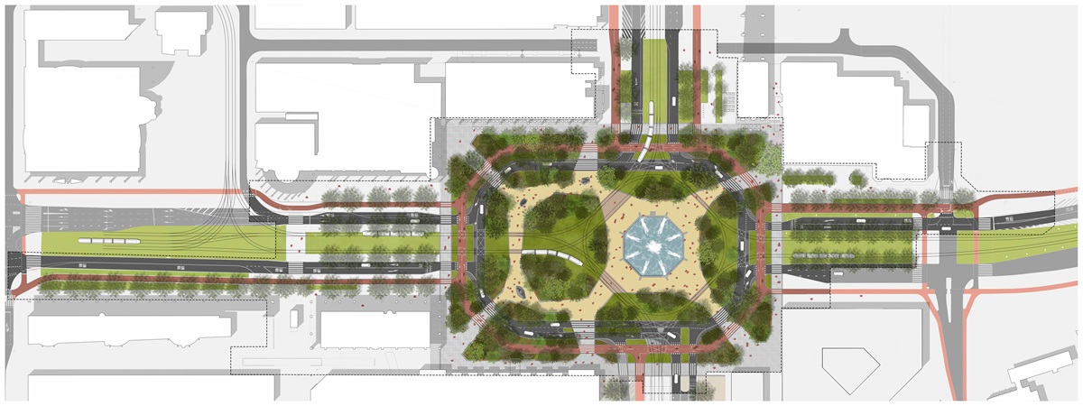 Het nieuwe plein is een ontwerp van architectenbureau Juurlink + Geluk. Het blijft ook in de nieuwe vorm een belangrijk knooppunt, maar wordt vooral ook een plek om volop te verblijven, ontspannen en ontmoeten. Het autoverkeer rijdt in de toekomst langs de randen van het plein, waarbij er van de huidige vijf rijbanen twee overblijven. De fietspaden worden verbreed en het openbaar vervoer, zoals de tram, krijgt een centrale plek in het nieuwe ontwerp.