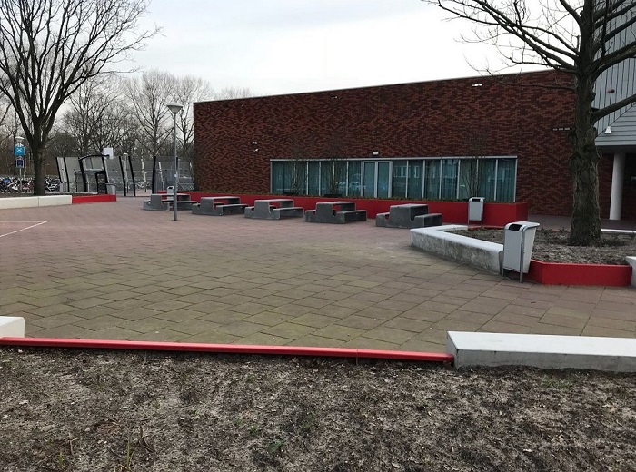 De tafels, luisterend naar de naam Tour, van het Spaanse merk Durbanis zijn geleverd door Tjinco. Het betonnen ontwerp geeft een strakke en industriële uitstraling en is bovendien duurzaam en bestendig tegen vandalisme. De picknicktafels kunnen ook binnen geplaatst worden.